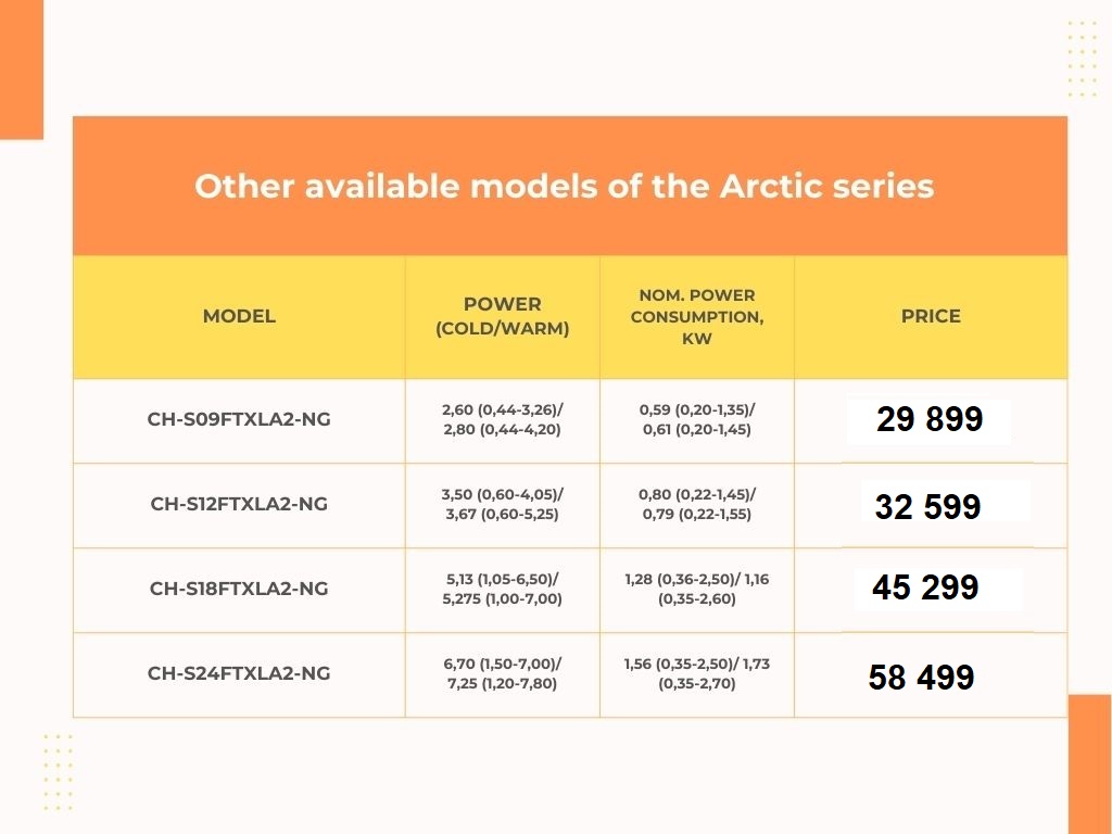 Cooper & Hunter air conditioners have always been known for their reliability and quality. The Arctic model is no exception. It is perfect for small and medium-sized rooms, providing a comfortable microclimate at any time of the year.