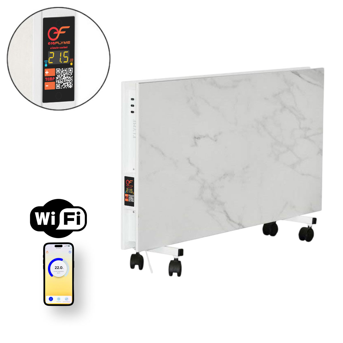Керамічна панель FLYME 700TW у кольорі білий камінь з Wi-Fi — це сучасний електричний обігрівач ..