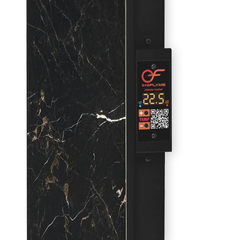 Керамічна панель опалення FLYME 700TB Темний камінь — сучасний обігрівач для комфортного та ефективного опалення приміщень до 14 м². Завдяки вбудованому модулю Wi-Fi панель можна дистанційно керувати через мобільний додаток: встановлювати температуру, задавати таймер, відстежувати споживання електроенергії та програмувати роботу обігрівача з будь-якого місця.