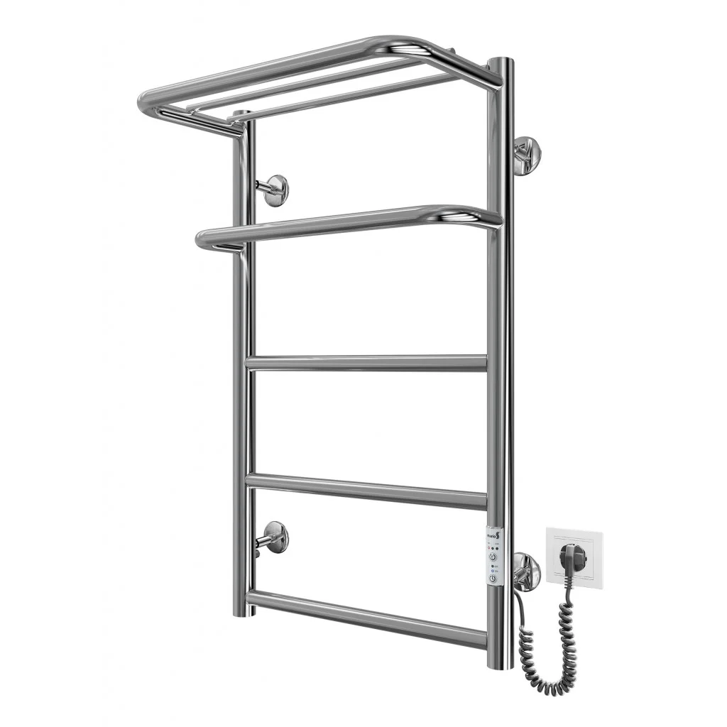 Електрична рушникосушка-драбинка виконана з нержавіючої сталі та відполірована до дзеркального ефект..