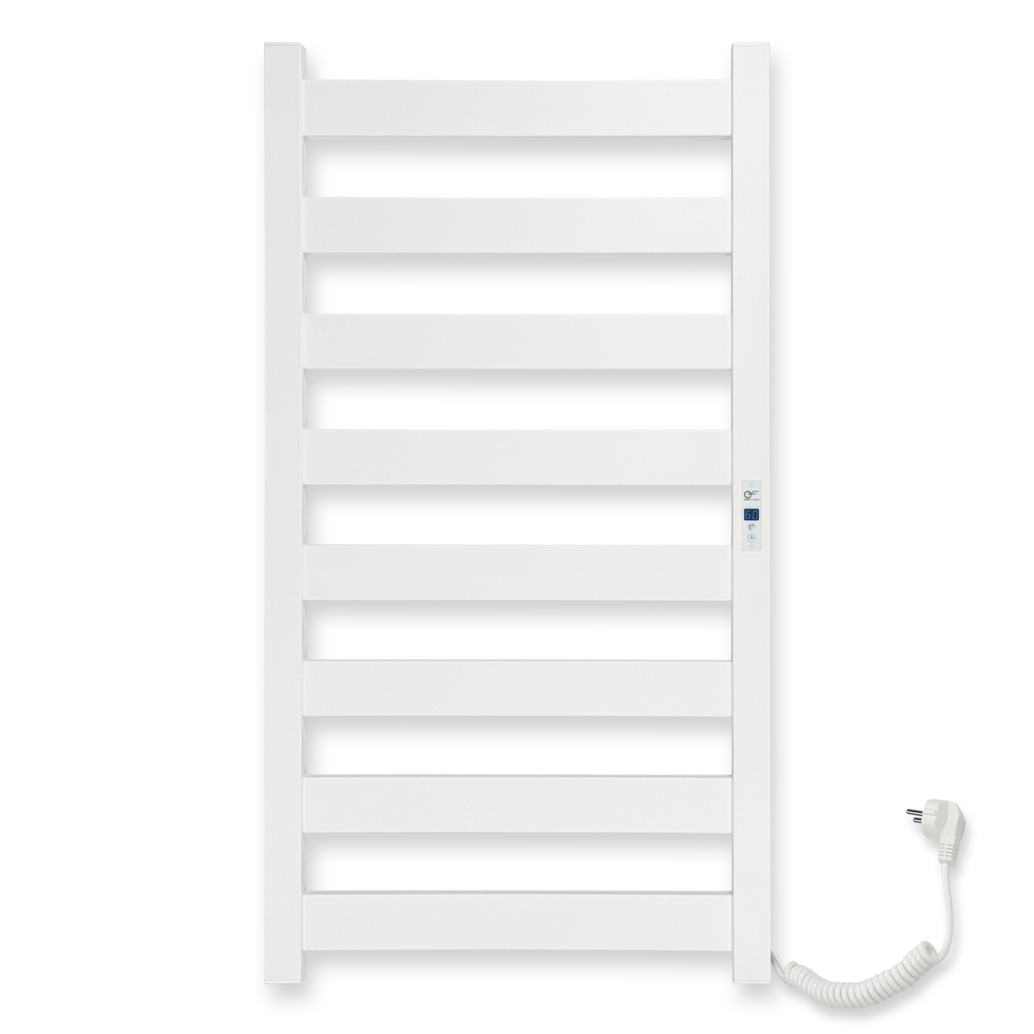 Белый полотенцесушитель EF Bond R – это удобный и современный прибор для ванной, кухни или прачечной. Он выполнен из прочной стали с белым матовым покрытием и оснащён встроенным терморегулятором с таймером, что позволяет легко управлять работой устройства.