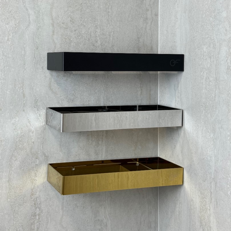 Модель виготовлена з високоякісної нержавіючої сталі SUS 304, що відзначається винятковою стійкістю до вологи, корозії, температурних перепадів та подряпин. Такий матеріал не лише довговічний, а й абсолютно безпечний для використання у вологих приміщеннях. Матове чорне покриття додає полиці вишуканості, не залишає слідів від пальців, легко миється і зберігає естетичний вигляд тривалий час.