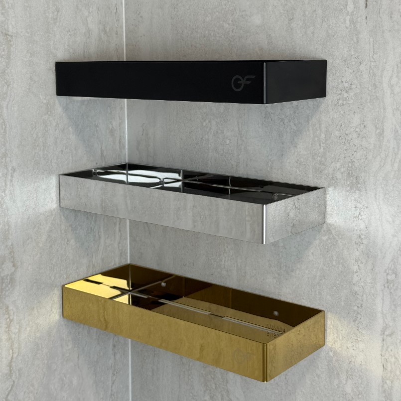 Полиця ідеально поєднується з рушникосушками в золотому кольорі, які представлені в нашому каталозі. Це дозволяє створити єдиний гармонійний стиль в інтер’єрі — без компромісів.